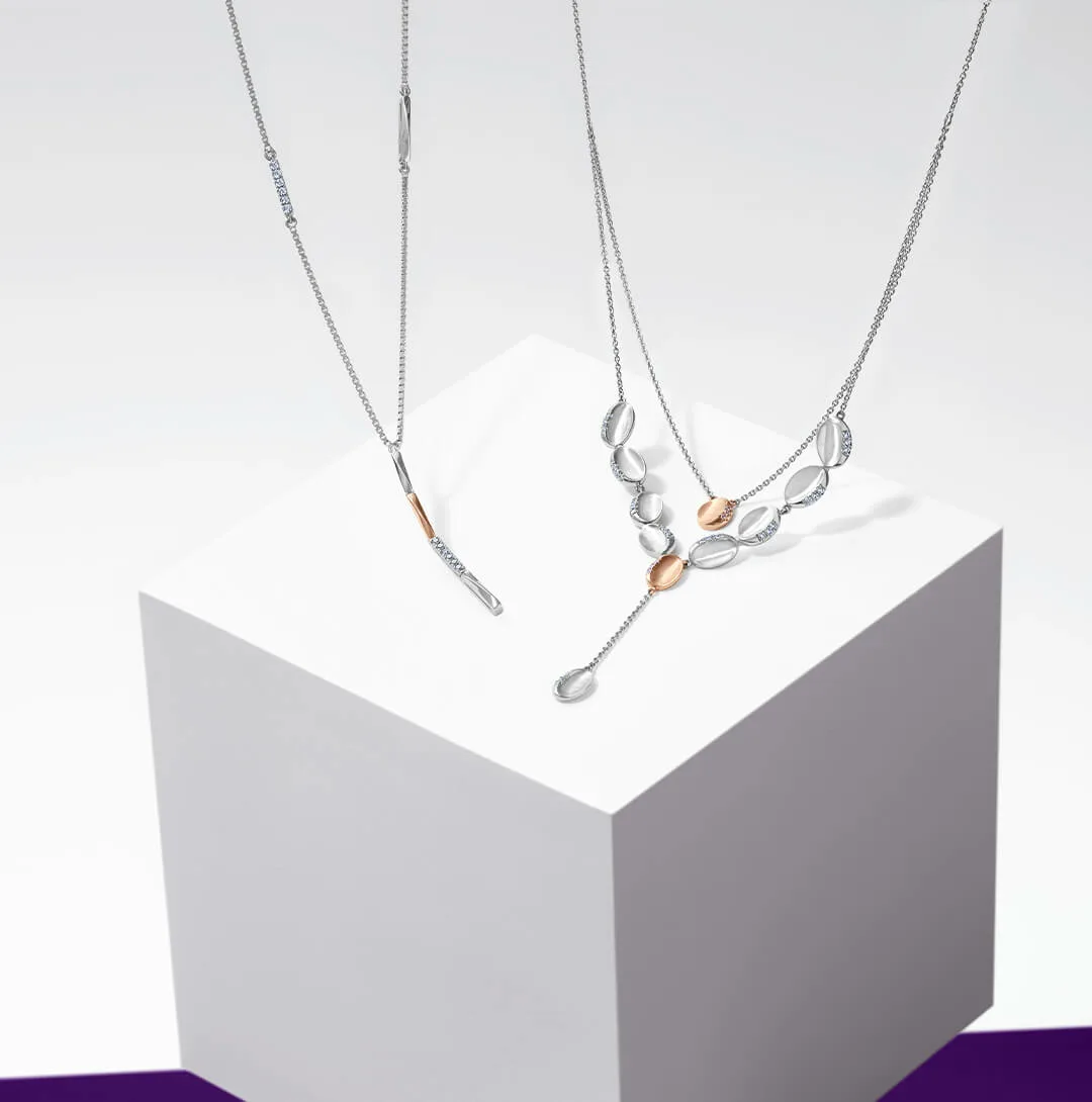 The extraordinary feeling of being a woman, of being you. One that can be celebrated only with classic yet contemporary designs of these platinum necklaces.