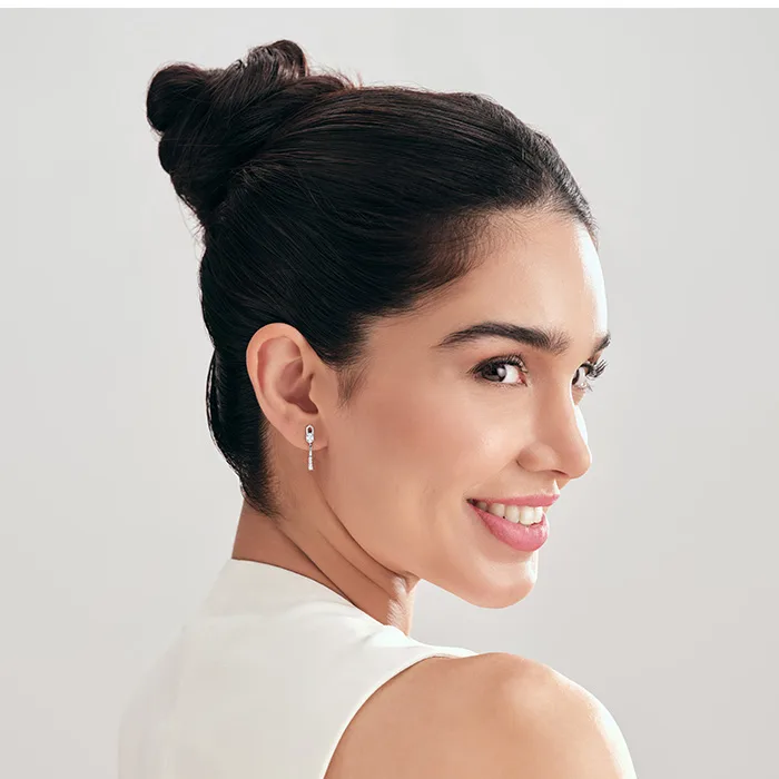 Dangling platinum bars inlaid with sparkling diamonds, these earrings epitomize quiet sophistication. They capture the essence of balancing who you are with who you aspire to be. Crafted in extraordinary platinum, a metal born of the stars, this piece is an ode to the unique beauty that is unmistakably you.