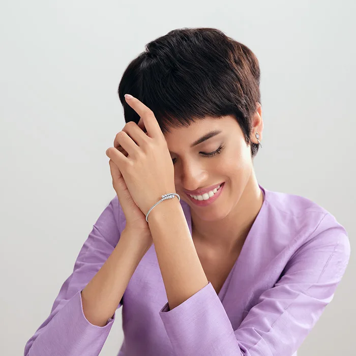 Enveloped in a dance of spiraling shapes and diamond-dusted circles, this platinum bracelet echoes the versatility of your spirit. It encapsulates the essence of your extraordinary journey, each twist and turn enriched with cherished milestones. Crafted in 95% pure platinum, a metal born of the stars that arrived on Earth in a celestial shower. Rare beyond compare.
